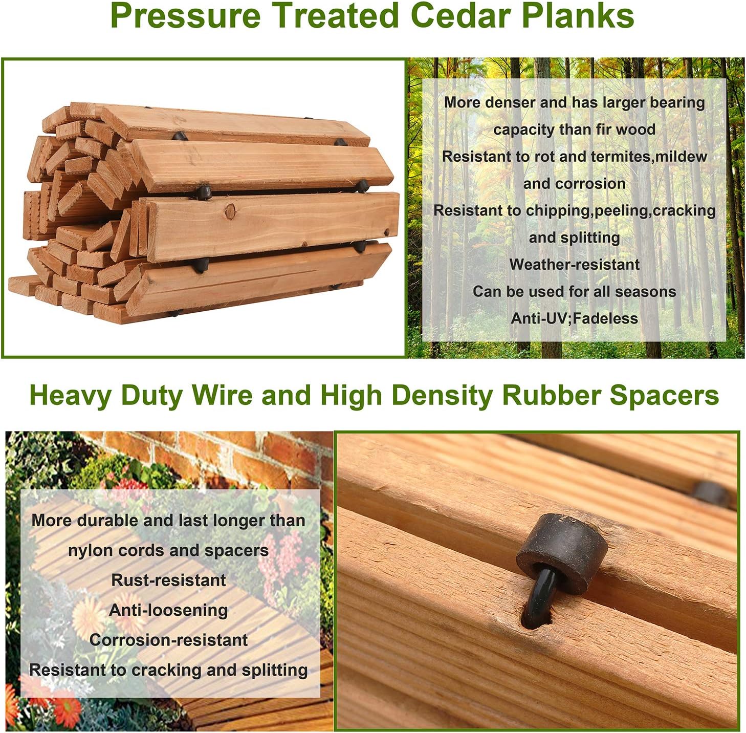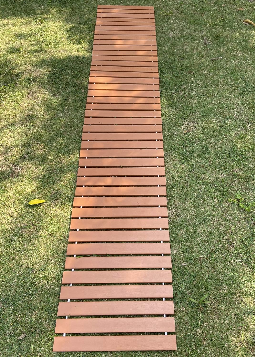 Roll out our curved cedar wood pathway and stay high and dry while crossing damp or muddy ground.